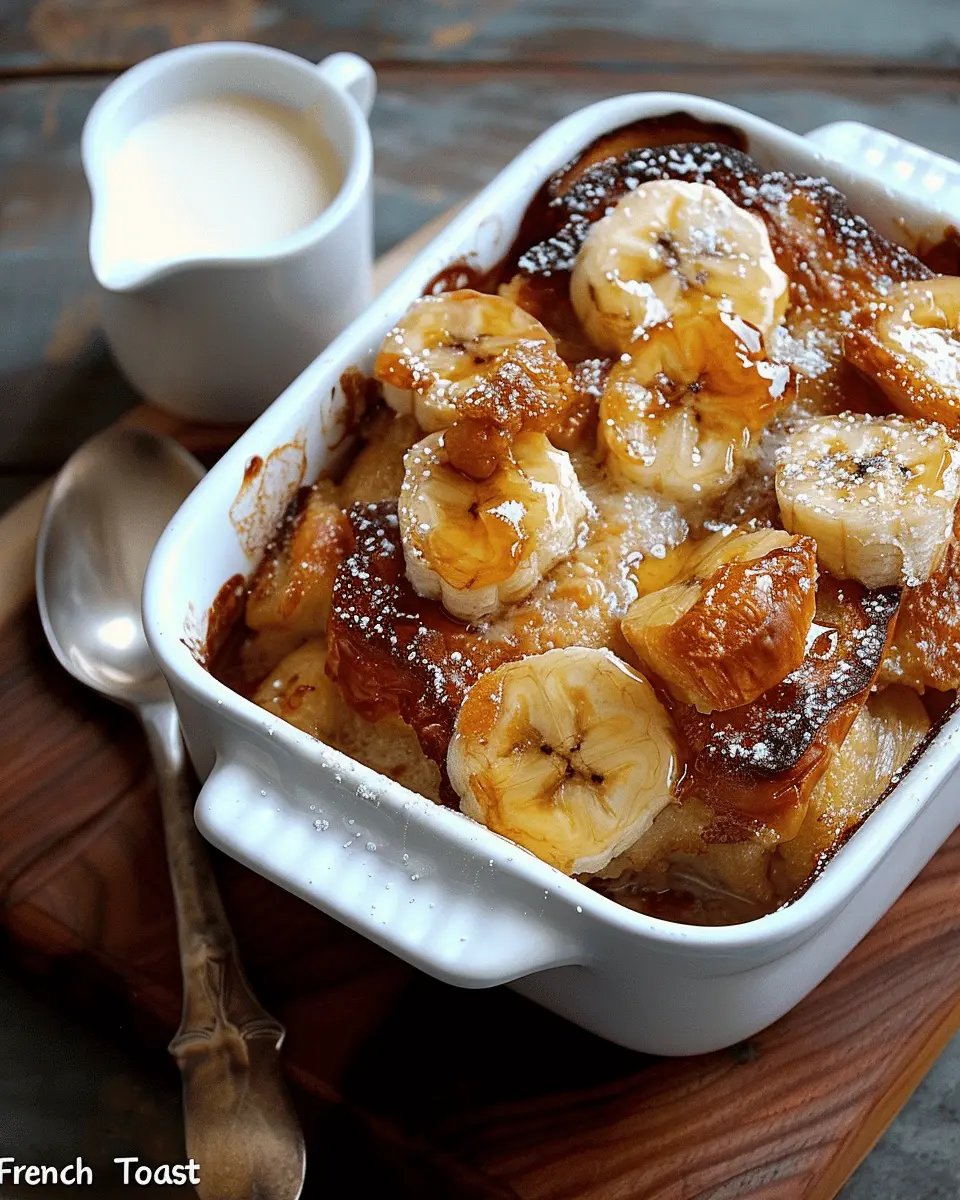 Delight in the rich, buttery flavor of this Banana Croissant French Toast Casserole, a perfect blend of sweet bananas and flaky croissants soaked in a custard mixture, baked to golden perfection.