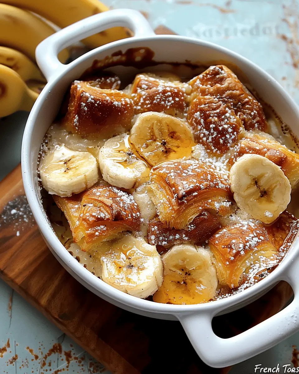 I still remember the first time I made this Banana Croissant French Toast Casserole. It was a chilly Sunday morning, and I craved something special to share with friends. With a few perfectly ripe bananas and some leftover croissants on hand, I decided to experiment. The smell wafting through the kitchen was intoxicating! When my friends finally arrived, they couldn’t believe their eyes. The casserole was a beautiful golden brown, drenched in eggy custard, warm bananas peeking through. We devoured it in record time, and each bite was met with joyful exclamations. That morning taught me that cooking could not only feed the body but also nourish the spirit—a lesson I carry into every gathering I host.