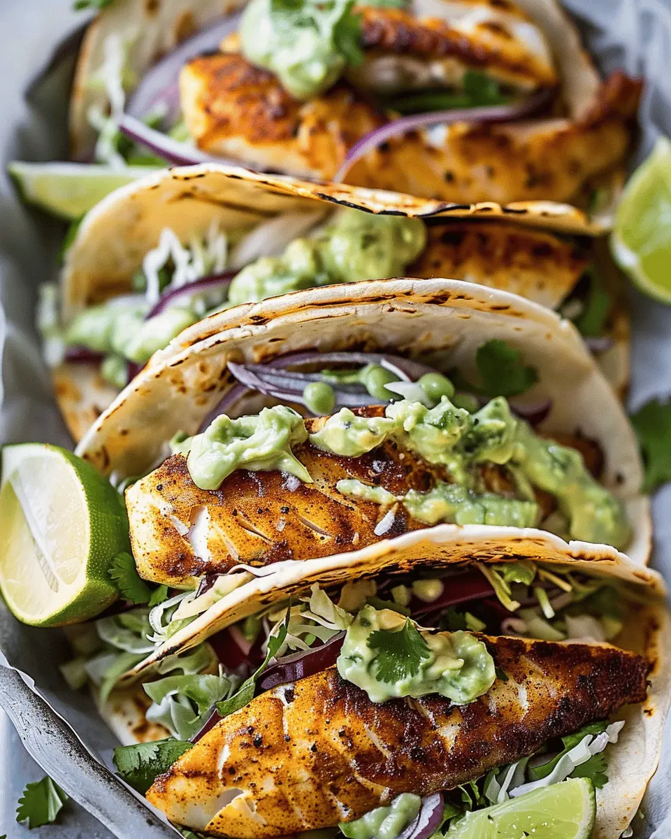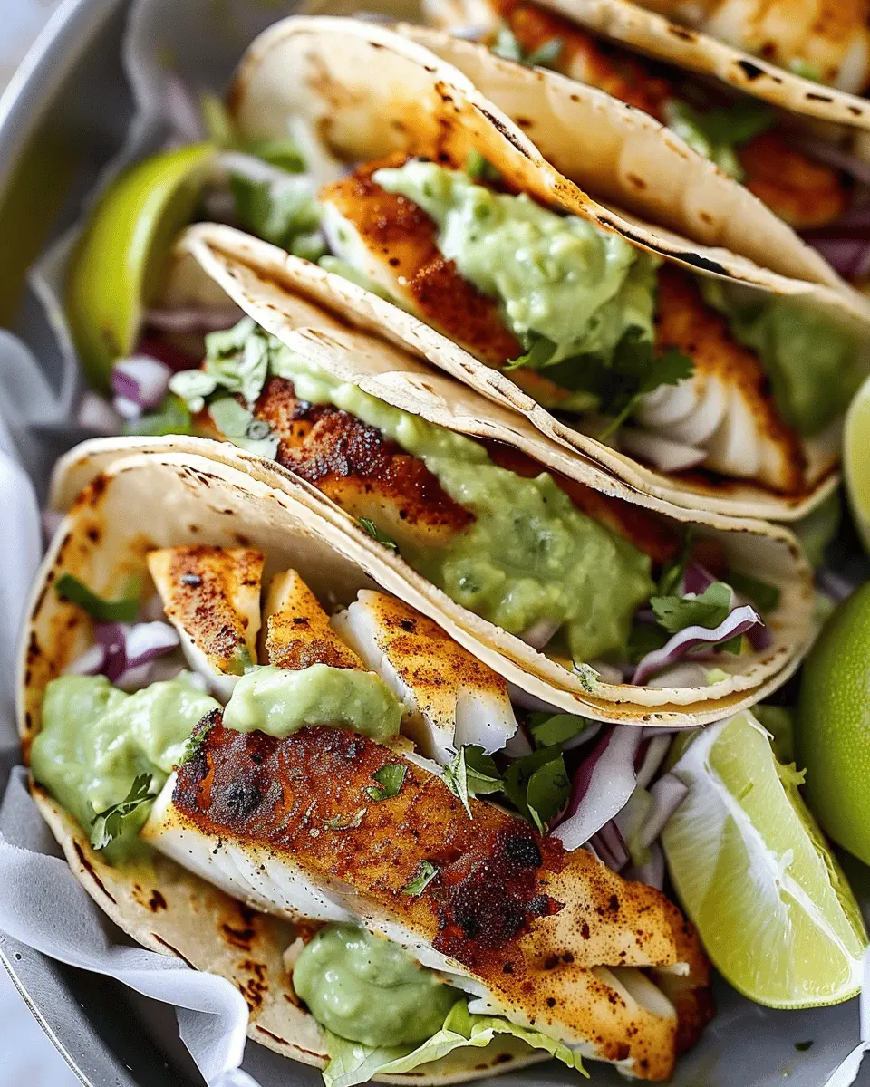 For a creamy twist, our recipe features a creamy avocado sauce that perfectly complements the spiced fish. If you’re here looking for a unique and satisfying meal to wow your friends or family, these tacos deliver flavor and flair in spades.