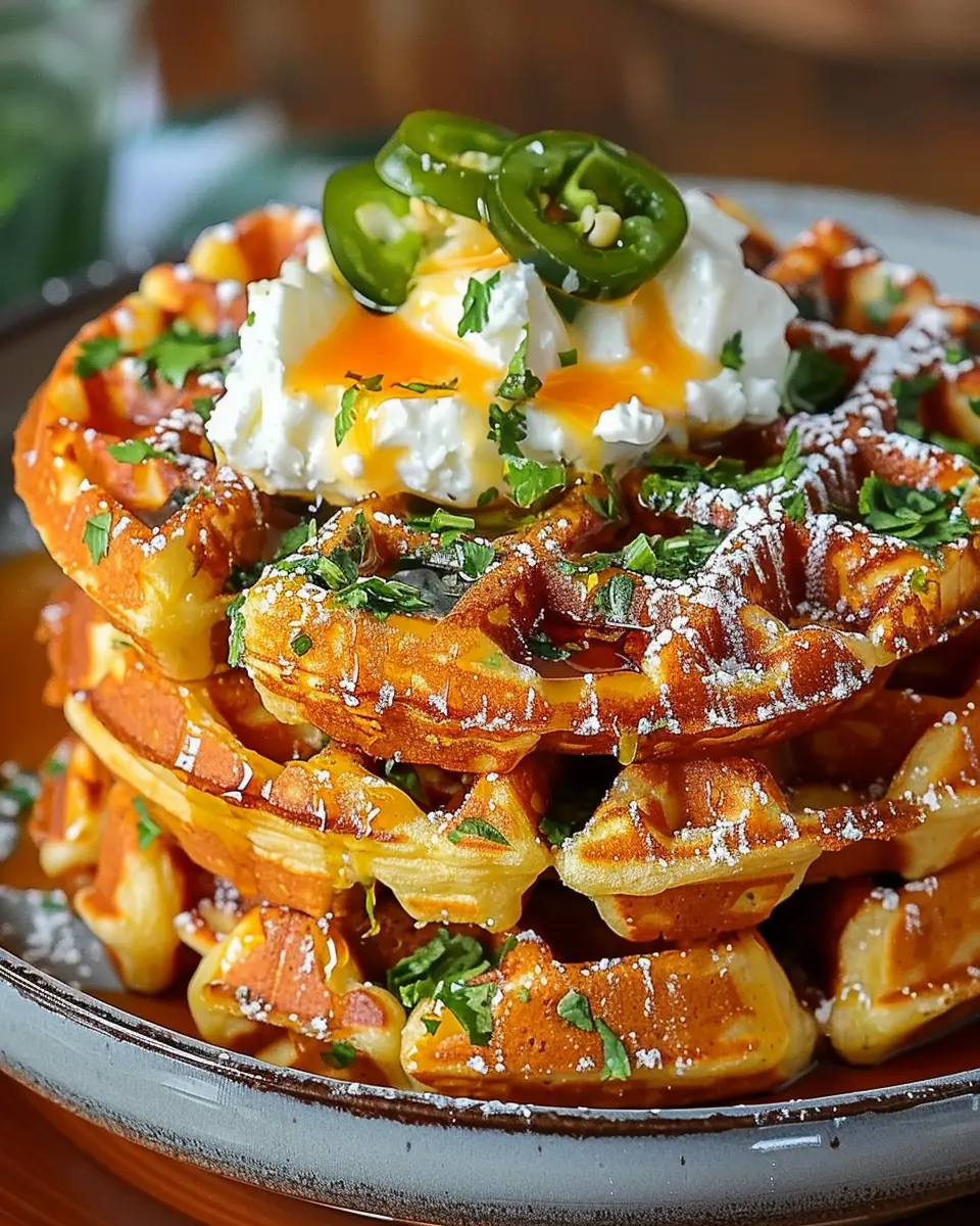 • Savory Toppings: Consider topping your waffles with a dollop of Greek yogurt or sour cream for a creamy contrast. Added bonus? It’ll cut through the heat of the jalapeños.