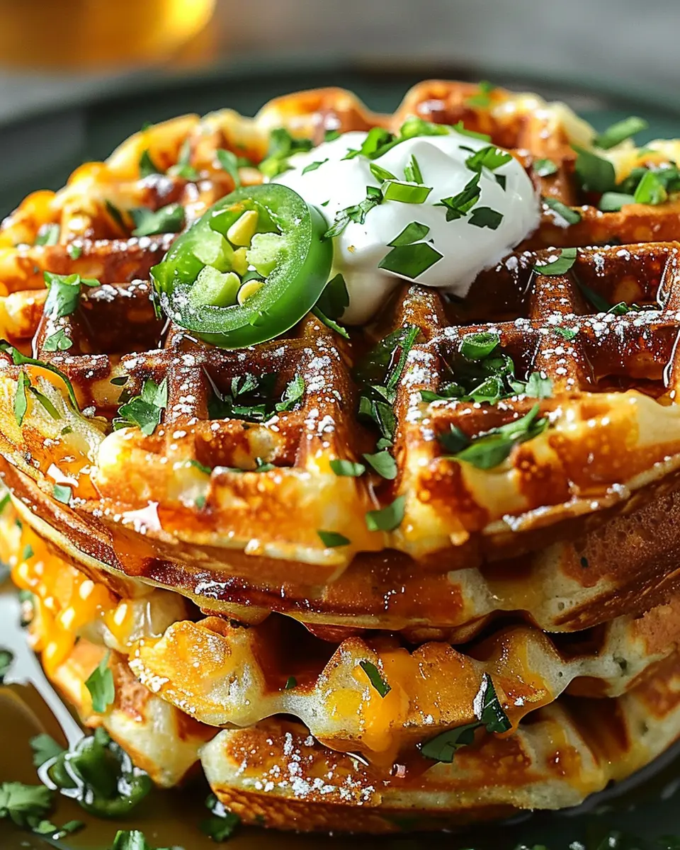 Deliciously savory cornbread waffles infused with cheddar cheese and jalapeños, perfect for breakfast or as a savory snack.