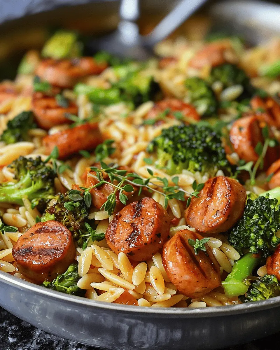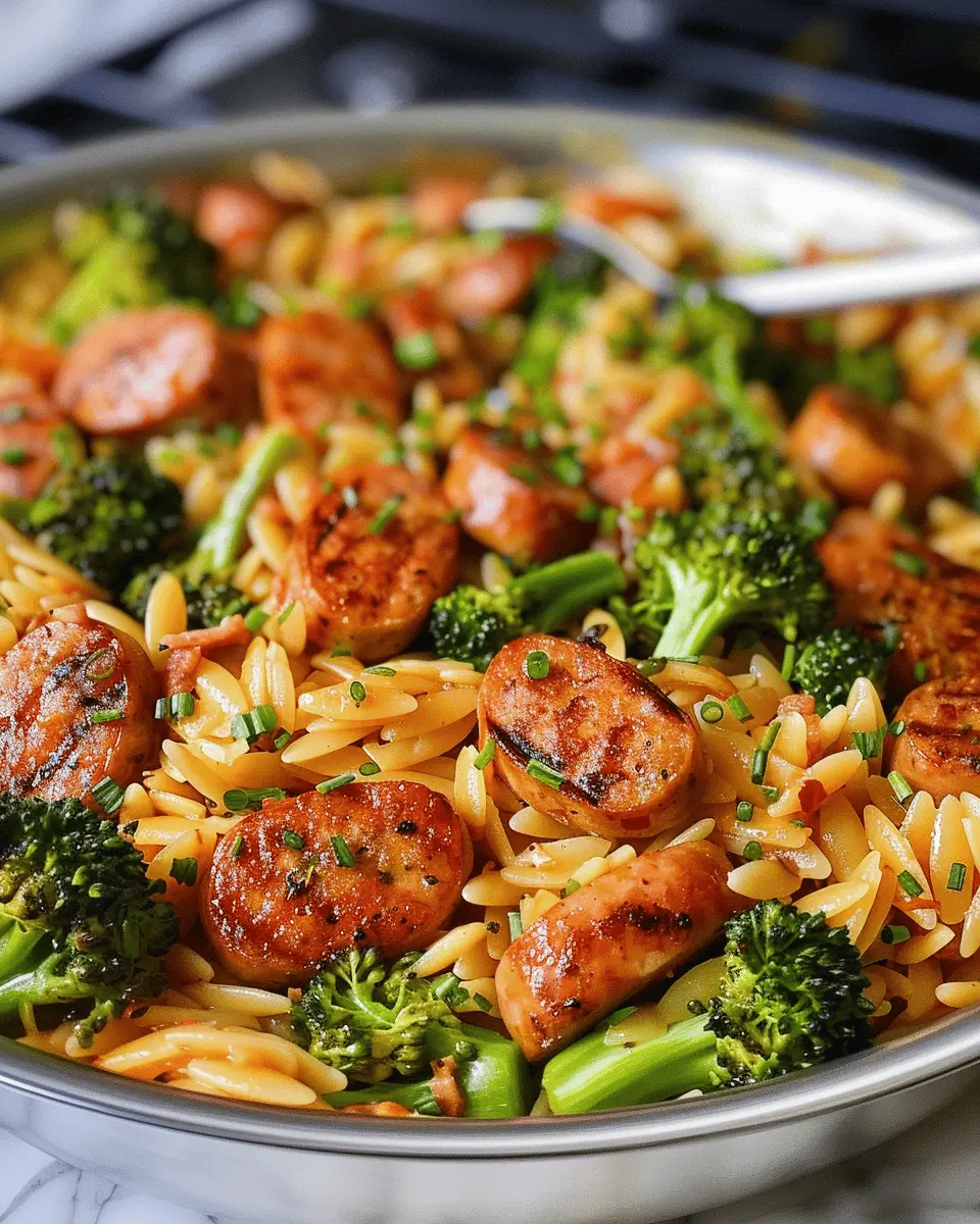 Enjoy a quick and delicious family meal with this Chicken Sausage Broccoli Orzo recipe that combines savory sausage and nutritious broccoli in a delightful orzo dish.