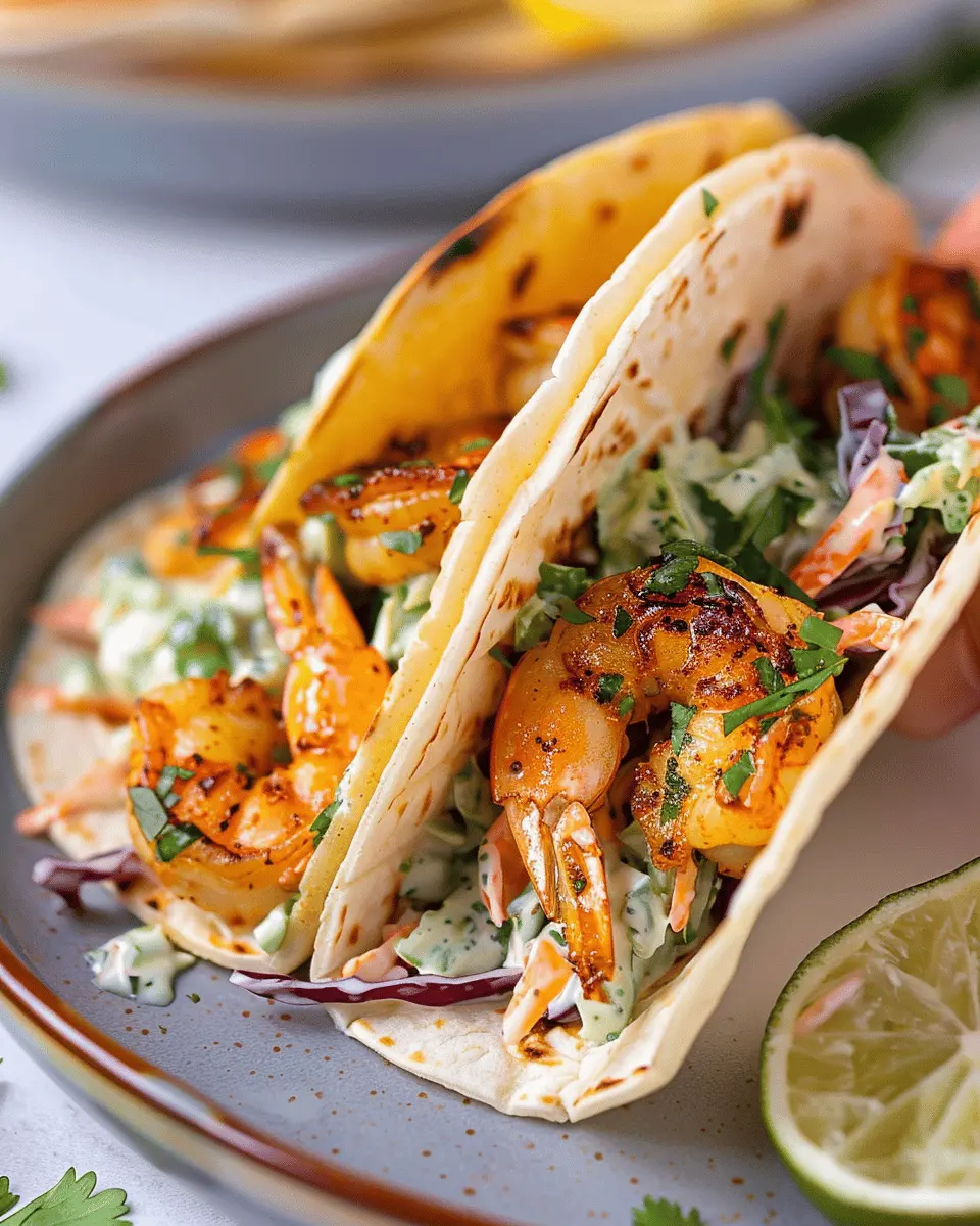 Cilantro Lime Shrimp Tacos are a flavorful and refreshing dish, complemented by a creamy slaw.