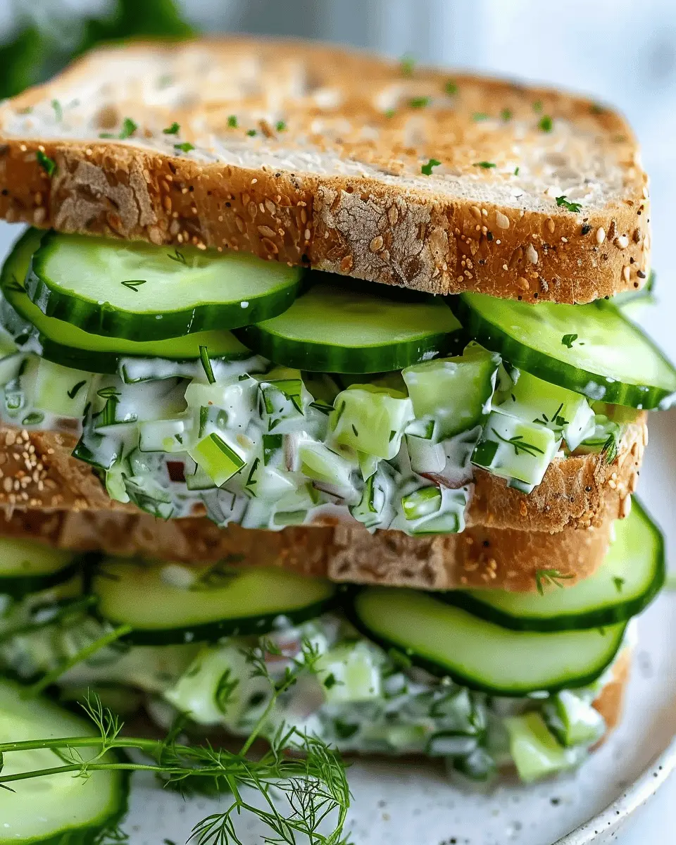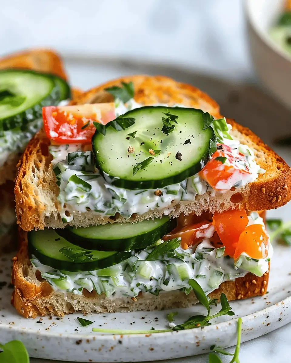With your cucumber-yogurt mixture ready, it’s now time to build your easy cucumber salad sandwiches. Choose your bread wisely; whole grain, rye, or classic white all work wonderfully.