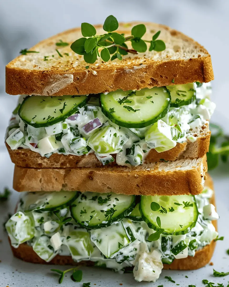 So there you have it! A perfectly delicious and simple recipe that’s ready in no time. Whether you’re hosting a small gathering or enjoying a quiet meal at home, these cucumber salad sandwiches are sure to impress. Happy cooking!