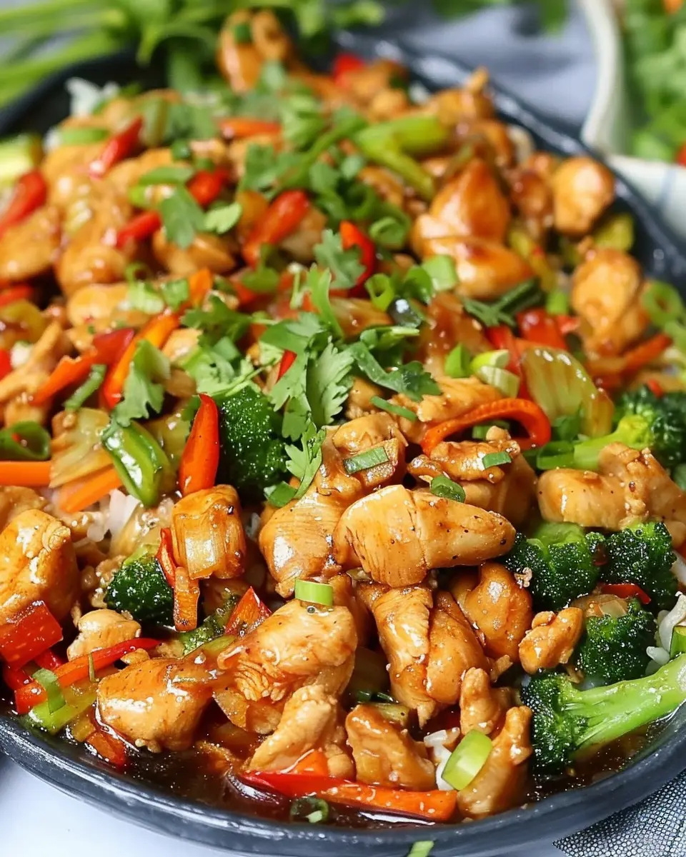 Presentation matters just as much as taste! Try stacking your stir fry on a bed of arugula or spinach for a fresh twist. Alternatively, use a large, shallow bowl and arrange your chicken and veggies artfully, then drizzle with sesame oil for that gourmet touch. A sprinkle of sesame seeds can add both texture and elegance.