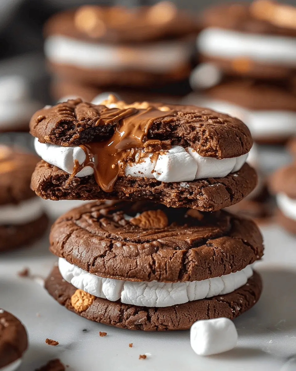 Indulge in the rich flavors of Nutella and marshmallows with these delightful s’mores inspired cookies.